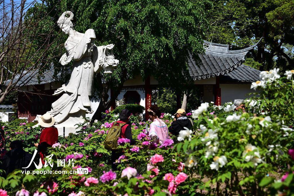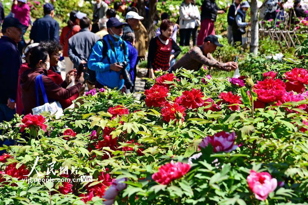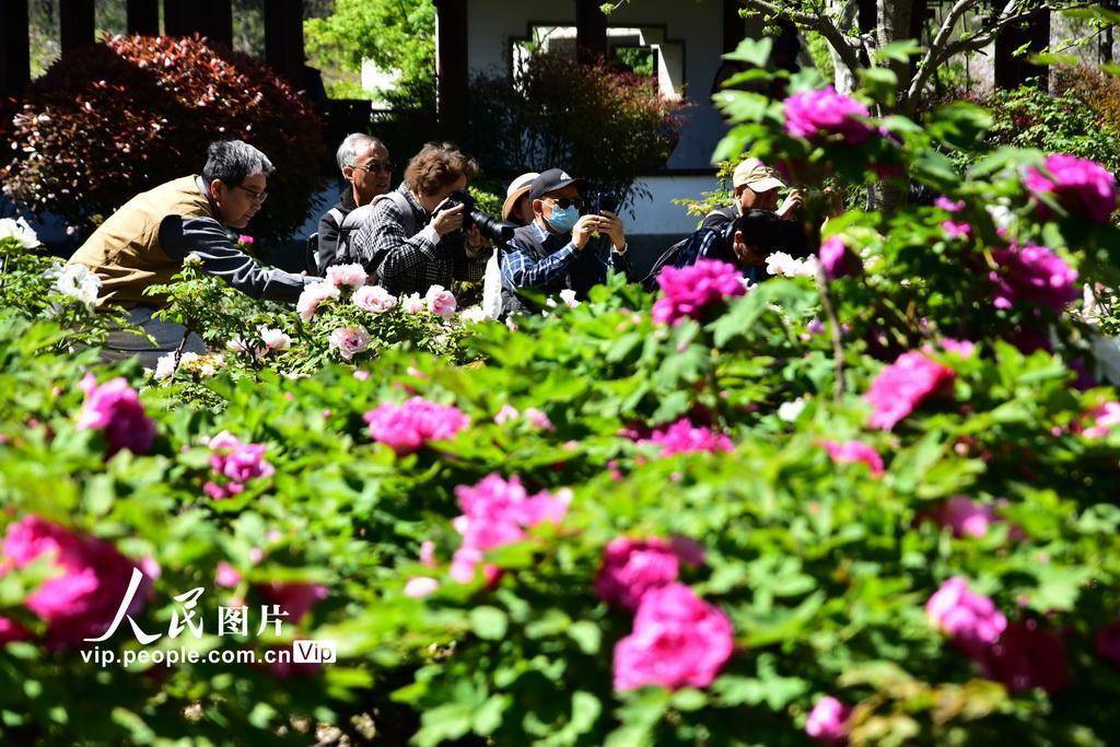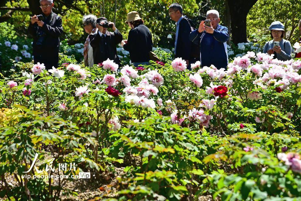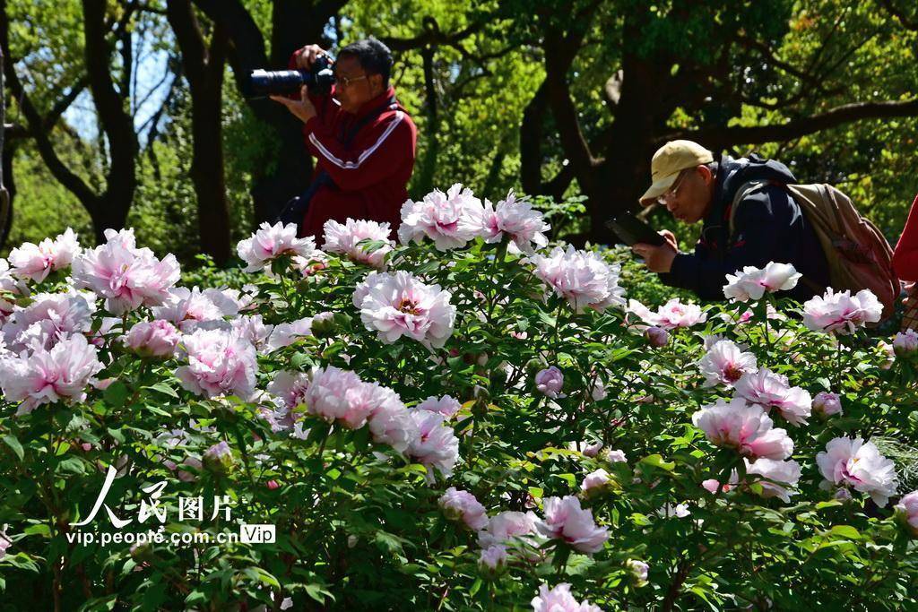 2026年4月7日,上海植物园,牡丹竞相盛开,吸引市民前来拍照。周东潮摄(人民图片网)